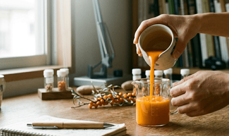 最近の研究では、サジーに含まれるフラボノイド成分「イソラムネチン」が、体内の活力を保つ造血ホルモンであるエリスロポエチン(EPO)の産生を促進することが、ヒト由来の細胞を用いた試験で確認されています※10。