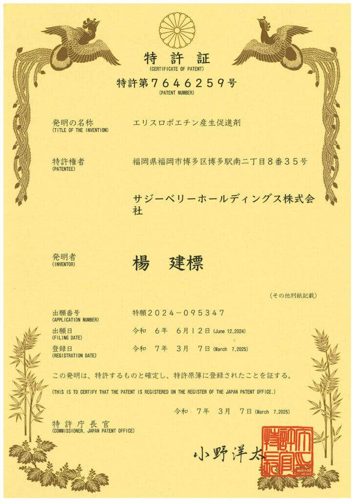 【特許情報】エリスロポエチン産生促進剤